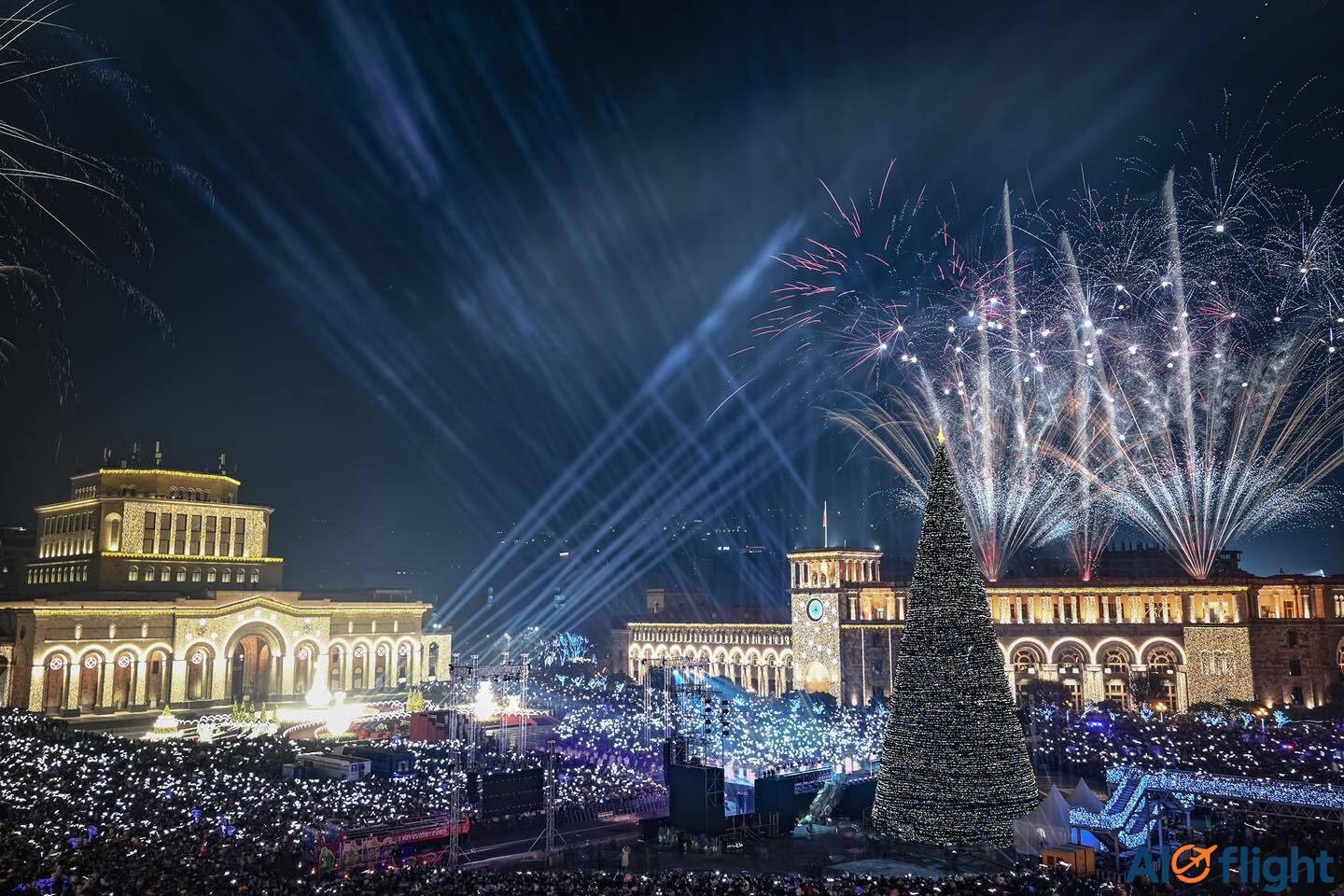 ایروان در ایام کریسمس پر از نور ، چراغ و وفضای جشن است.بازدیدکنندگان می توانند از خیابانهای سرزنده، کافهها و رستورانهای تزئین شده لذت ببرند. پارکهای عمومی با سرگرمیها و بازیهای زمستانی برای کودکان و خانوادهها آماده شدهاند. با تور ارمنستان الوفلایت، میتوانید این تجربه بینظیر کریسمس را همراه با خدمات کامل هتل و ترانسفر داشته باشید، یا به صورت مستقل فقط بلیط هواپیما تهیه کنید.
